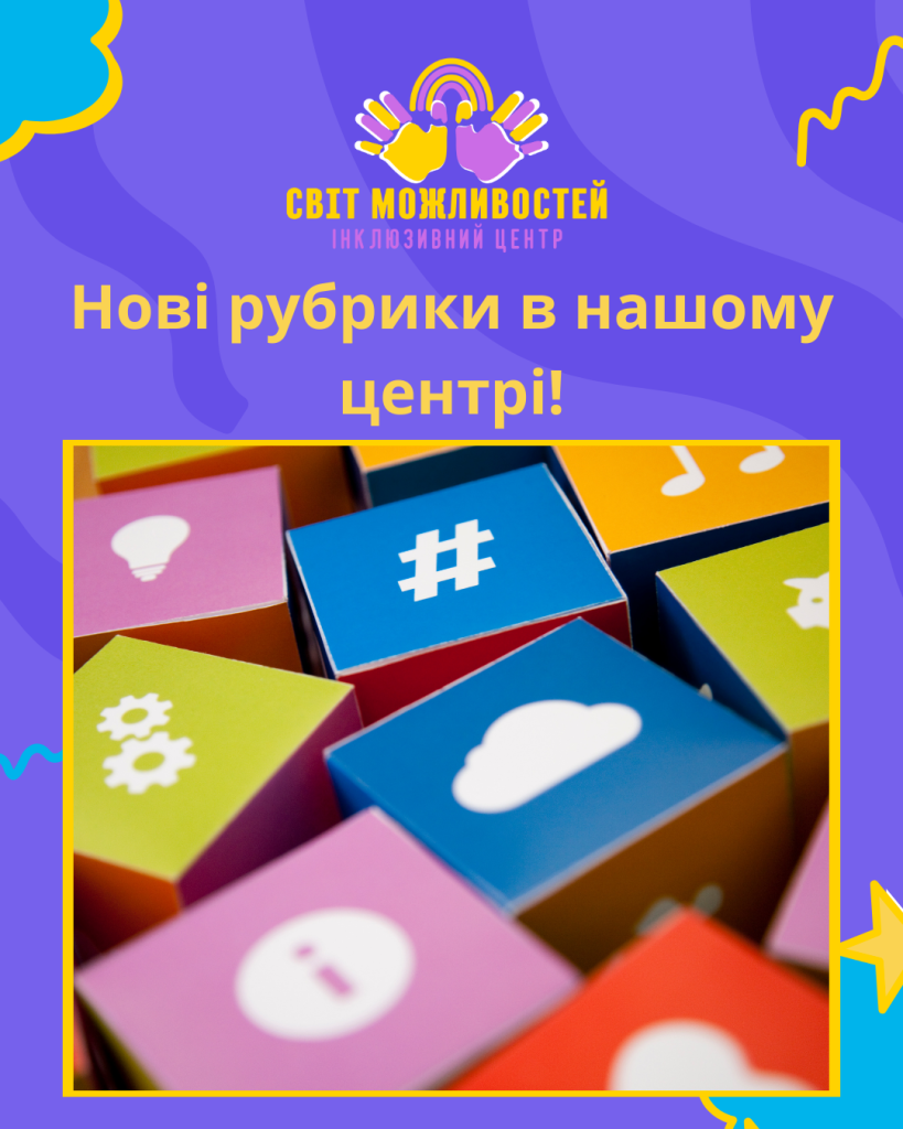 Ми хочемо, щоб Ви ще більше дізнавалися про життя Інклюзивного центру “Світ можливостей”, тому вводимо нові категорії для публікацій: