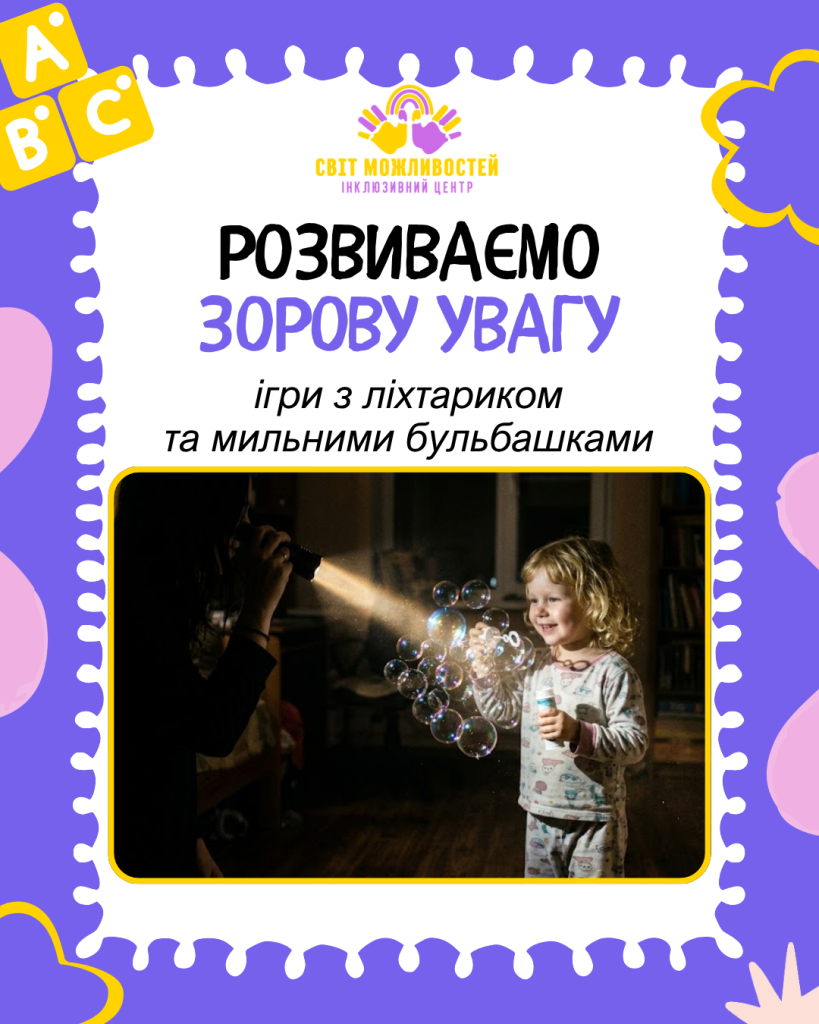Встановити зоровий контакт із дитиною з РАС іноді буває непросто. Але секрет не в примусі, а в тому, щоб стати для дитини джерелом найцікавіших подій у світі. Коли ми використовуємо світло чи бульбашки, ми не просто бавимося — ми вчимо мозок фокусуватися та стежити