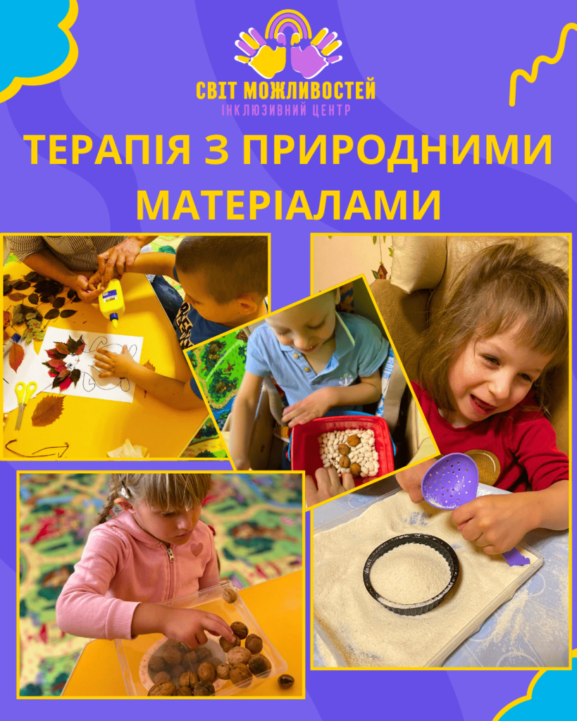 Продовжуємо серію постів про напрями роботи Інклюзивного центру «Світ можливостей». Сьогодні знайомимо Вас з ще одним важливим напрямком нашої роботи — терапією з природними матеріалами